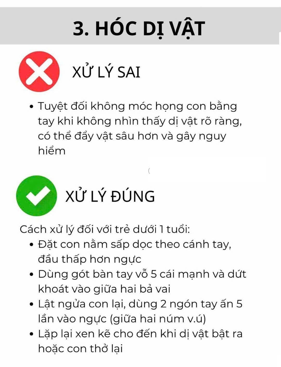Nhiều cha mẹ vì quá lo lắng nên dễ sơ cứu sai cách khi con gặp sự cố như sặc sữa, hóc nghẹn, sốt co giật hay chảy máu cam..., đôi khi khiến tình huống nguy hiểm hơn.