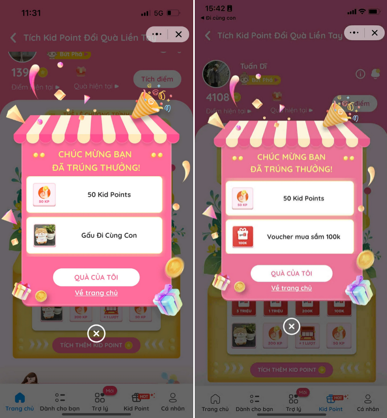 - Giải khuyến khích: Nhận thêm Kid Point hoặc lượt quay miễn phí