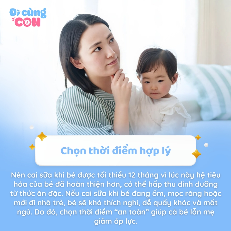 Cai sữa là bước ngoặt lớn với cả bé và mẹ. Đi từng bước chậm rãi, đúng cách sẽ giúp bé quen dần, không quấy khóc nhiều và mẹ cũng thấy nhẹ nhõm, thoải mái hơn.