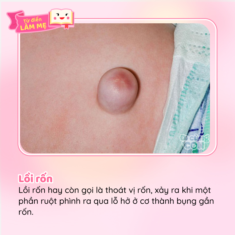 Thoát vị rốn xảy ra khi một phần ruột phình ra qua lỗ hở ở cơ thành bụng gần rốn. Thoát vị rốn là bệnh khá phổ biến ở trẻ sơ sinh và thường tự lành khi lớn. Nó có thể to hơn khi cười, ho, khóc hoặc đi vệ sinh và có thể co lại khi nằm thư giãn hoặc nằm xuống.