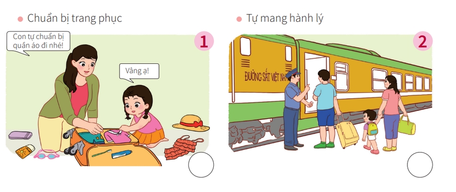 Đồng thời, hãy giao cho con một số nhiệm vụ cụ thể. Ví dụ, bạn có thể nói: "Con hãy chuẩn bị quần áo và giày dép của con"; "Mẹ sẽ chuẩn bị kem chống nắng và thuốc". Hướng dẫn con tự sắp xếp đồ của mình vào một chiếc ba lô hoặc vali nhỏ. Điều này giúp con cảm thấy mình có trách nhiệm hơn với hành lý của mình.