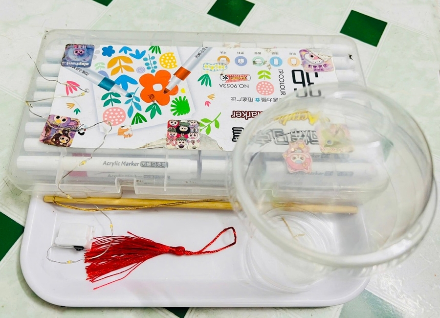 - Dây đèn đom đóm loại chạy pin (các bố mẹ có thể dễ dàng mua trên các sàn thương mại điện tử)