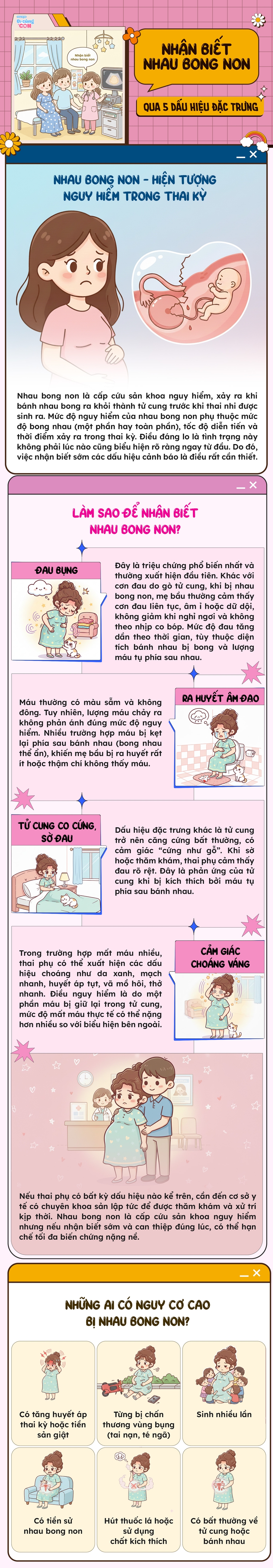 Theo Bệnh viện Từ Dũ, 5 dấu hiệu dưới đây có thể giúp thai phụ và nhân viên y tế phát hiện sớm tình trạng nhau bong non.