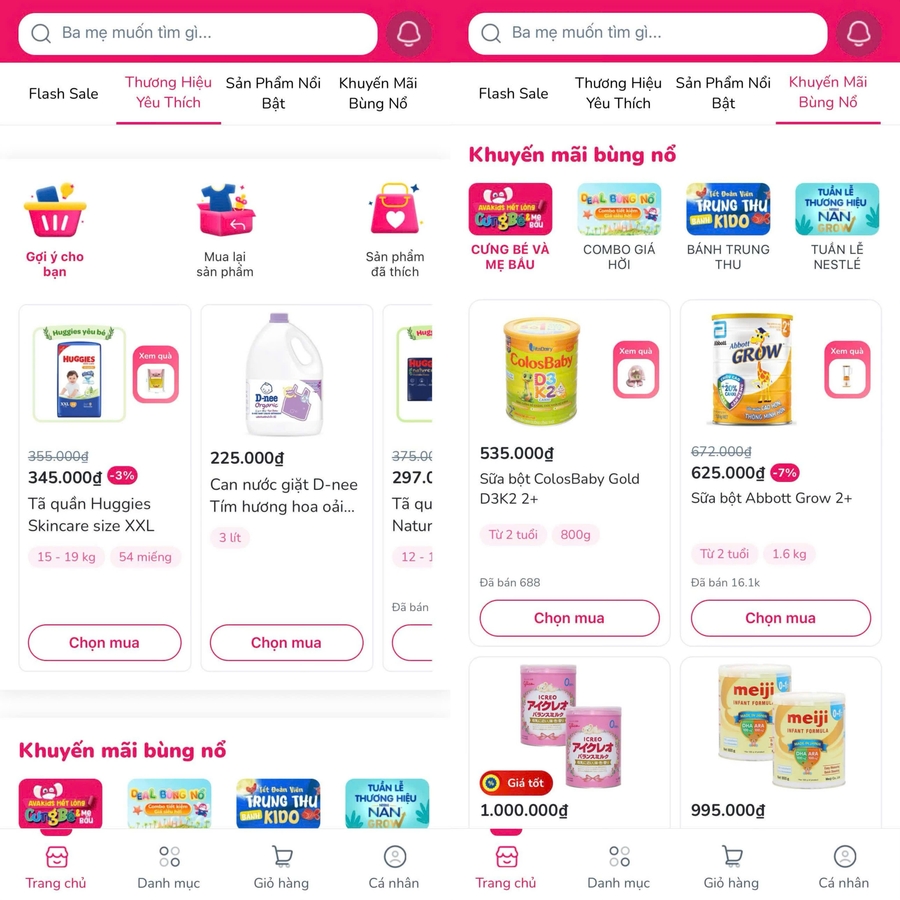 Các chương trình khuyến mãi theo mùa như Back to School, giao mùa hay lễ tết liên tục được cập nhật. Cha mẹ có thể gom combo tã sữa tiết kiệm, tận dụng freeship, hay đơn giản là nhận thông báo deal đúng sản phẩm mình hay mua. Thói quen mua sắm nhờ vậy trở thành “kỹ năng” dễ chịu, vừa tiết kiệm vừa không đánh đổi chất lượng.