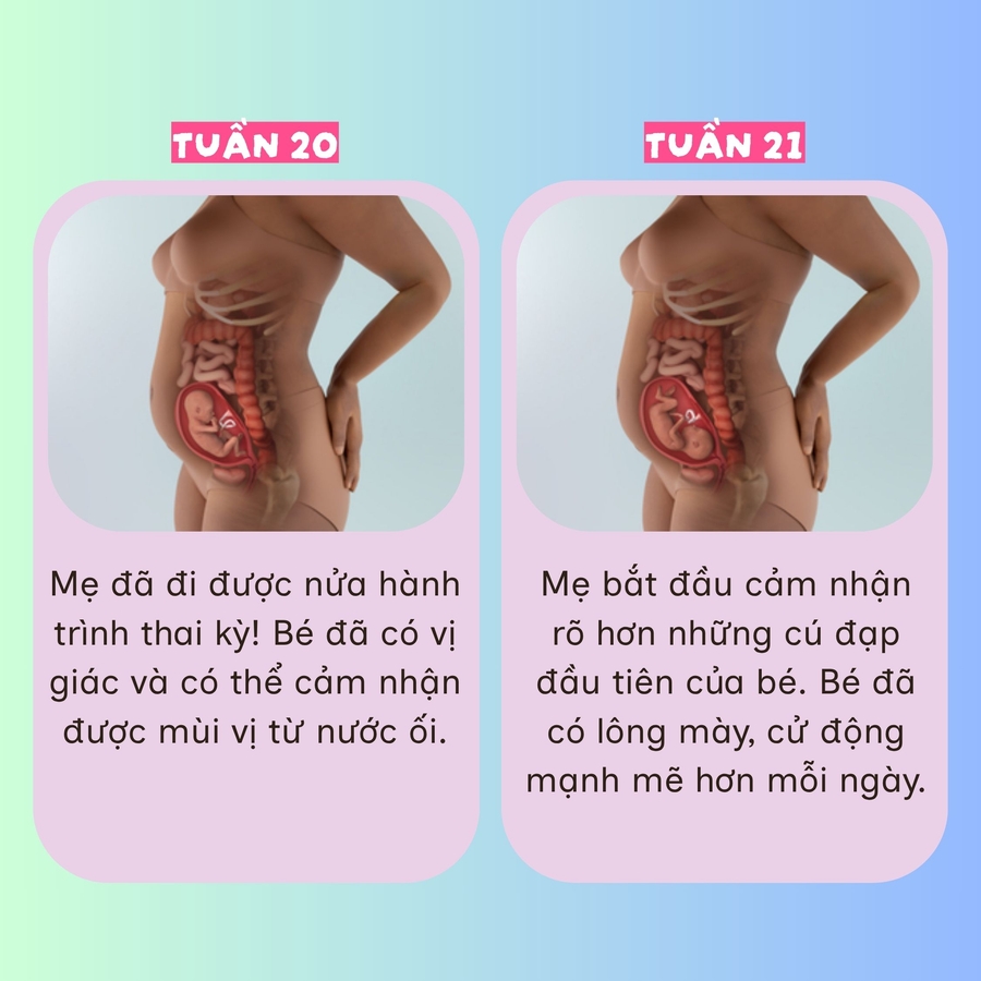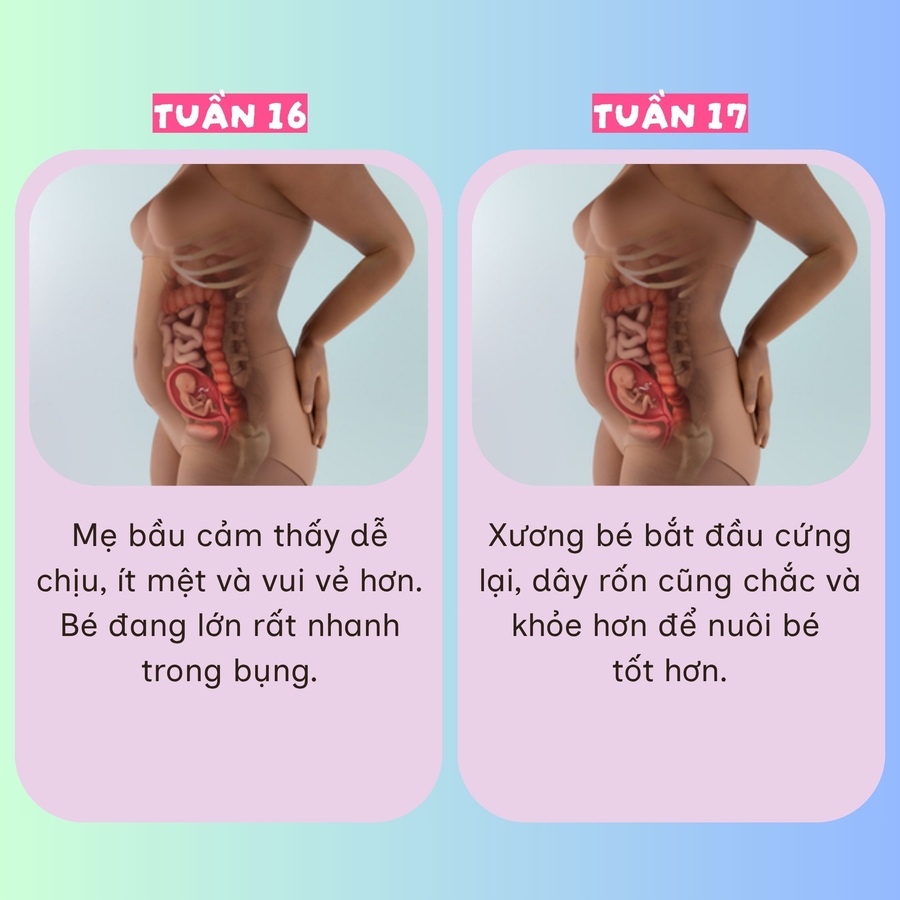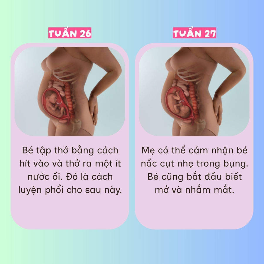 Từ tuần 14 đến 27, bé lớn nhanh từng ngày, biết nhăn mặt, nghe được giọng ba mẹ và cử động rõ ràng hơn. Đây là giai đoạn kỳ diệu khi mẹ thấy khỏe hơn, bụng tròn lên và con ngày càng hiện hữu hơn trong từng nhịp đập.
