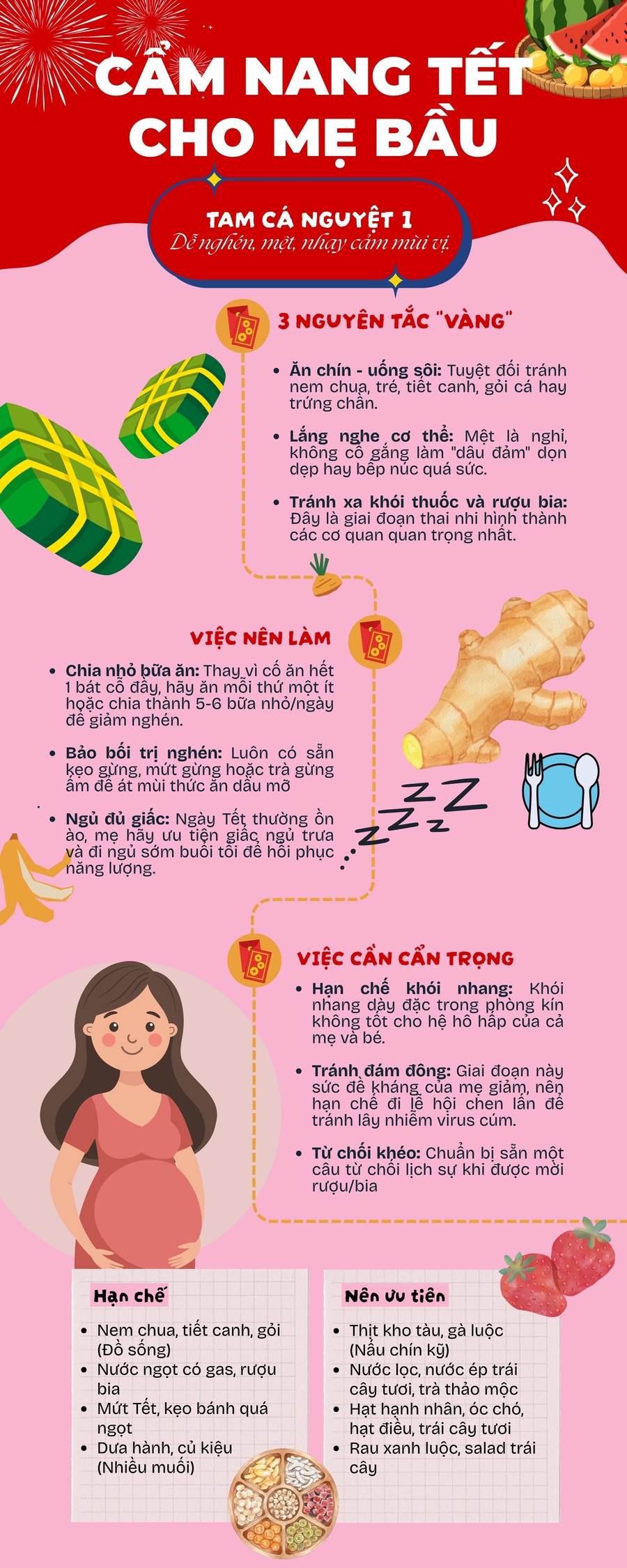 Tam cá nguyệt 1: Mẹ bầu ăn Tết sao cho khỏe?