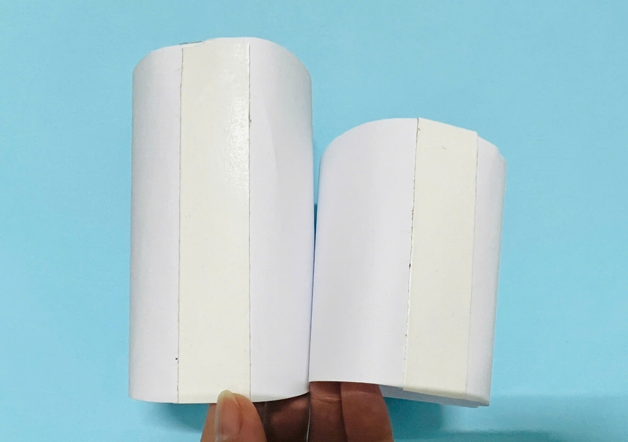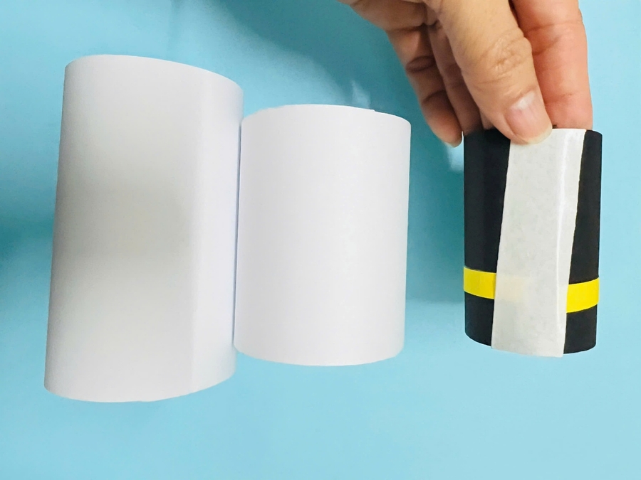 Tiếp theo, cha mẹ hãy hướng dẫn các bé dùng băng dính hoặc hồ dán băng giấy thành ống như hình dưới.