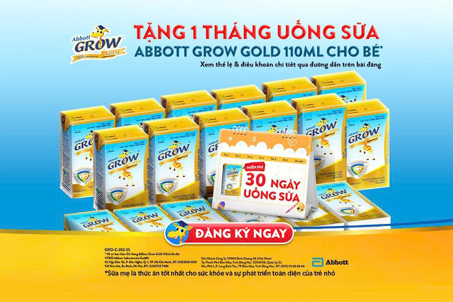 Cơ hội đặc biệt cho mẹ đăng ký ngay hôm nay để bé được trải nghiệm 30 ngày uống sữa miễn phí Abbott Grow Gold 110 ml - giúp bé cao hơn, khỏe hơn và phát triển toàn diện.