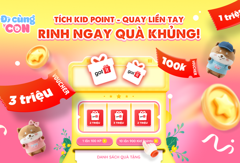 Chỉ cần trở thành hội viên Đi Cùng Con và tham gia chương trình “TÍCH KID POINT – QUAY LIỀN TAY”, ba mẹ đã có cơ hội nhận quà cực khủng với tổng trị giá đến 77 triệu đồng!